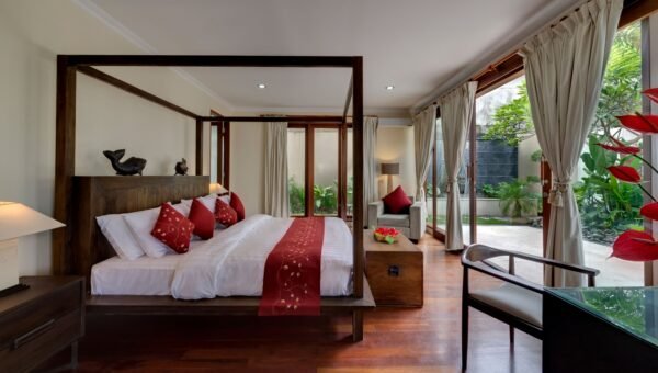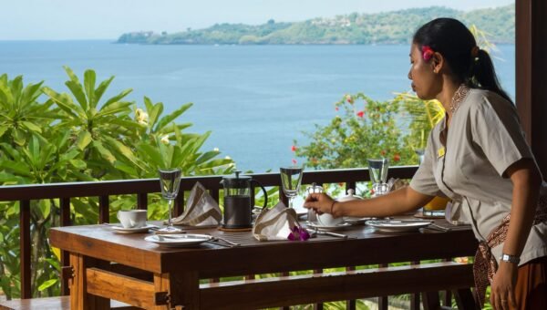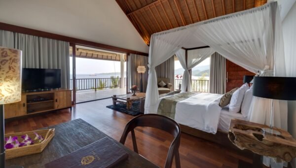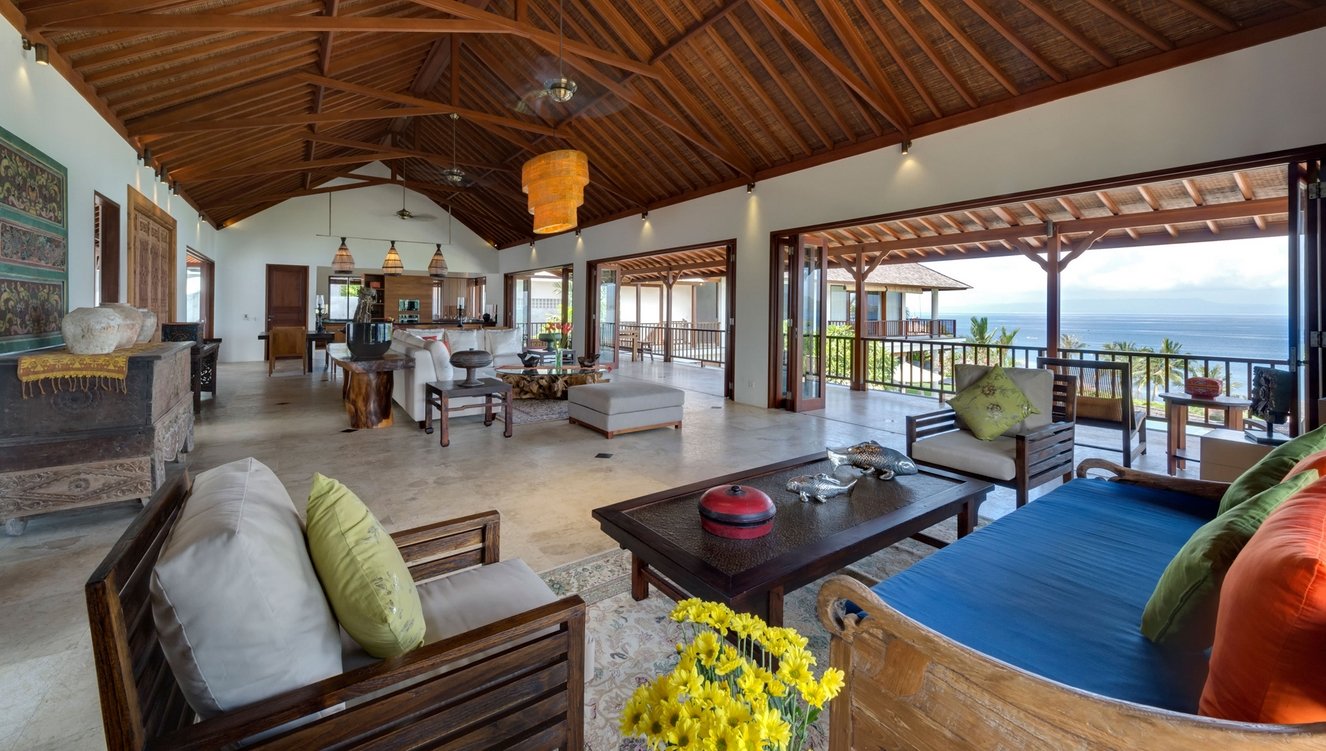 Perched on a lush hillside just 100 meters from the sea, this stunning 4-bedroom villa overlooks the crystal waters of Labuan Amuk Bay in East Bali. Far from the crowds of mainstream tourism, the villa offers a serene retreat with sweeping coastline views, generous indoor-outdoor spaces, an 18-meter private pool, and full event-ready facilities for weddings or celebrations.