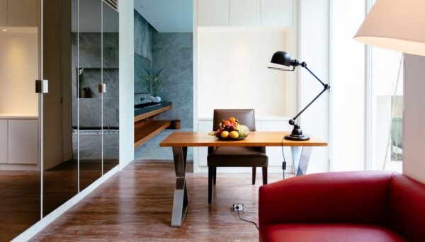 - Guest Suite 1 (Ground Floor): Convertible twin/king bed, zen mini-garden, large soaking tub & shower