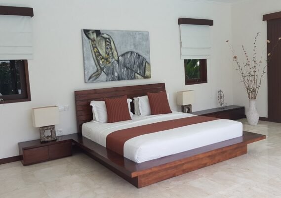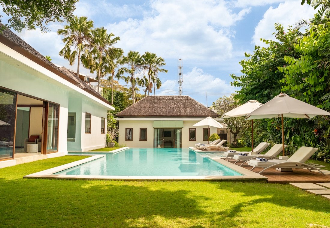 All five spacious bedrooms are air-conditioned, tastefully furnished with modern décor, and offer direct views of either the lush garden, the sparkling pool, or a private balcony.