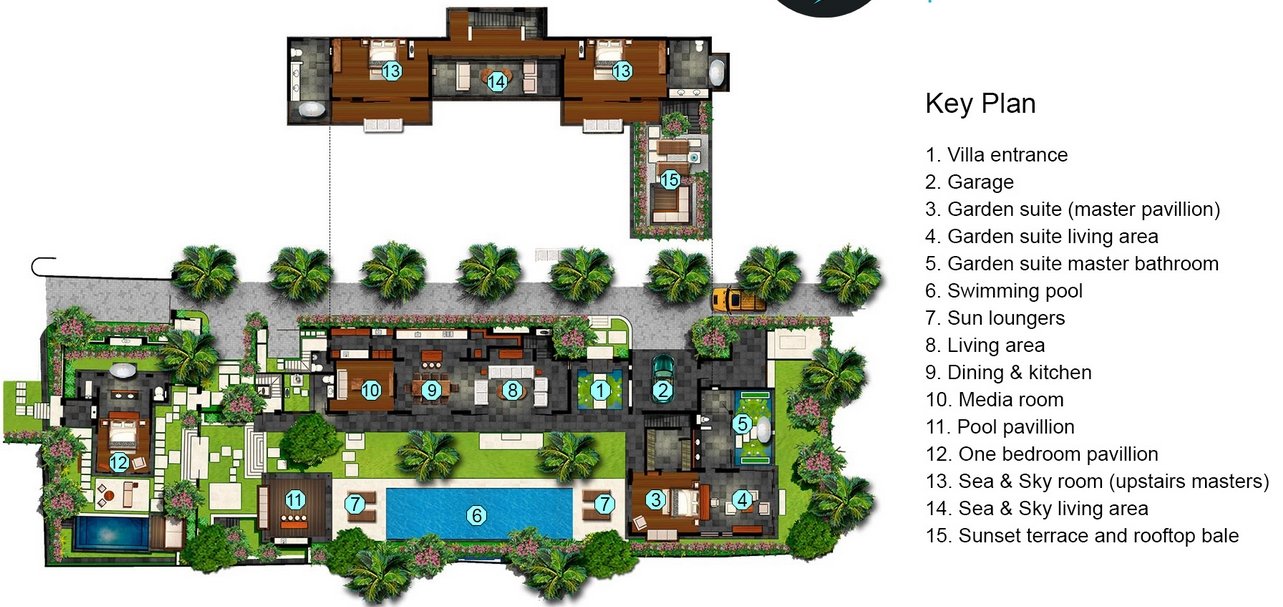 • Optional Master Suite – Private entrance, 7m plunge pool, sundeck, garden balé, indoor & outdoor bathroom, minibar & entertainment system.