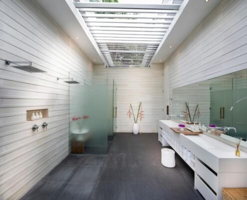 This stylish white-on-white residence is artfully adorned with local touches and surrounded by curated greenery. The open-air living space and breezy shaded pergola are perfect for lounging with a book or entertaining friends, while the sun-kissed pool deck invites you to unwind beneath the open sky.