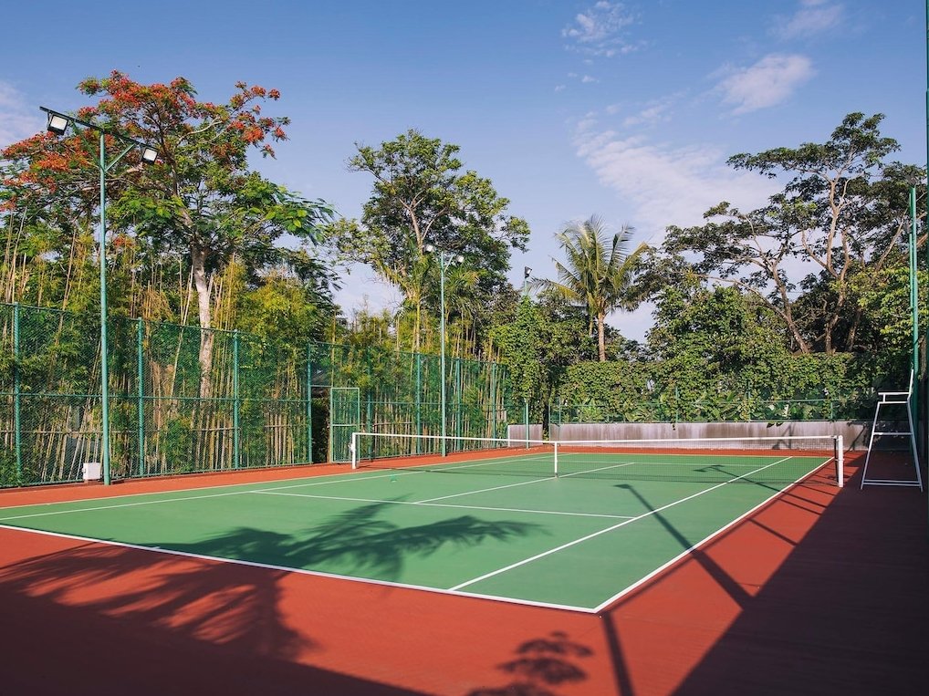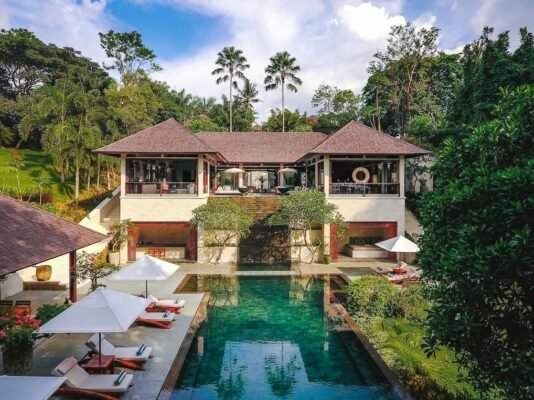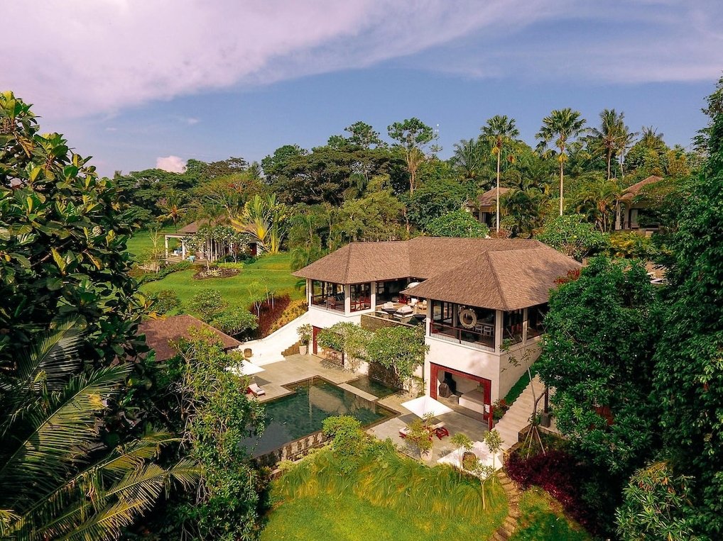 Set across two hectares of terraced gardens by a river in Bali’s lush Tabanan Regency, this spectacular 5-bedroom destination villa is a dream for large families, wellness retreats, or intimate celebrations. Just 10 minutes from Tanah Lot Temple and surfing beaches, the estate is fully staffed and filled with world-class facilities including a home cinema, games room, gym, tennis court, spa, and more.