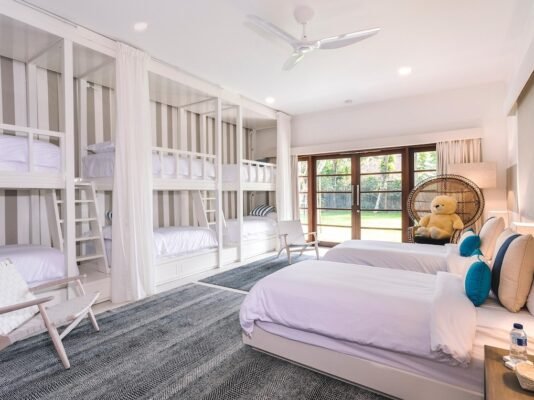 - 1x Kids slumber room with 3 bunk beds + 2 singles (convertible to king)