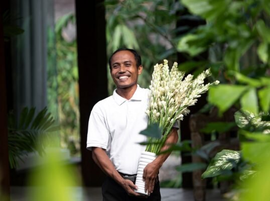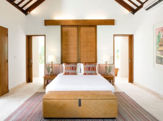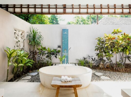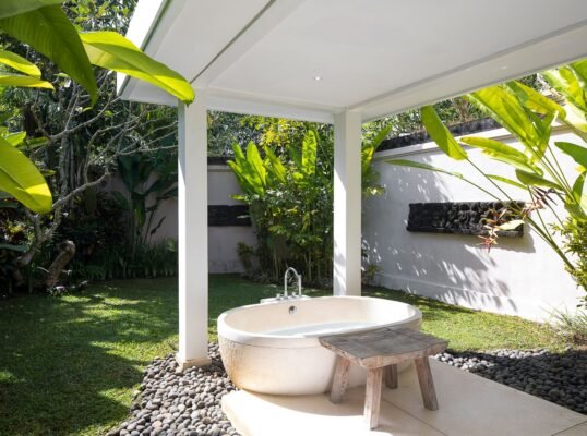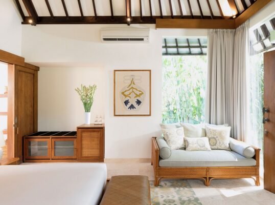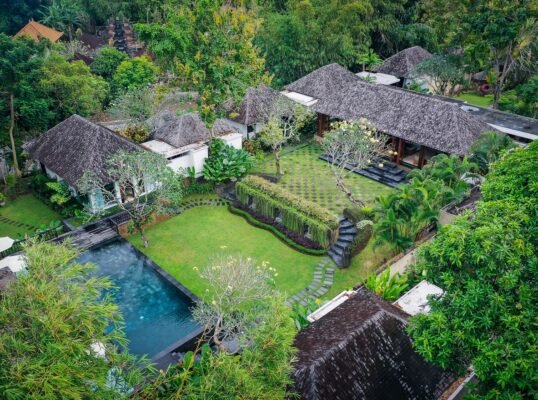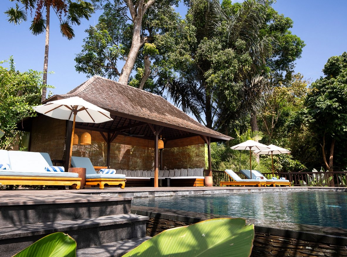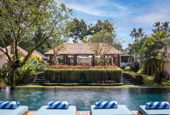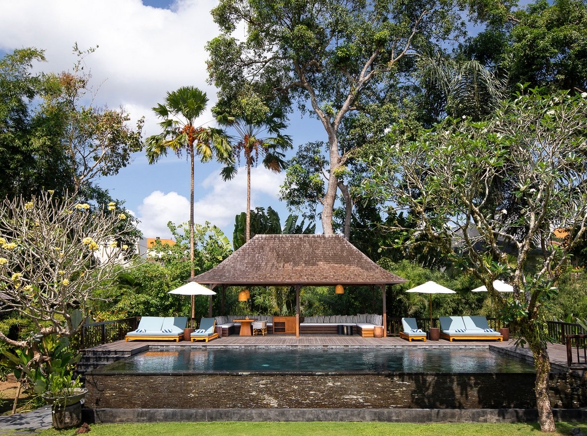 Relax beside the 13-metre pool, indulge in treatments at the riverside spa pavilion, or dine alfresco under ancient frangipani trees. Just a short drive from Canggu’s iconic beach clubs and cafes, yet peacefully secluded in nature.