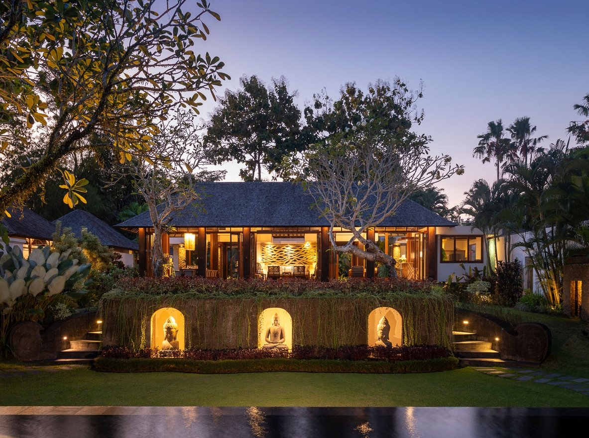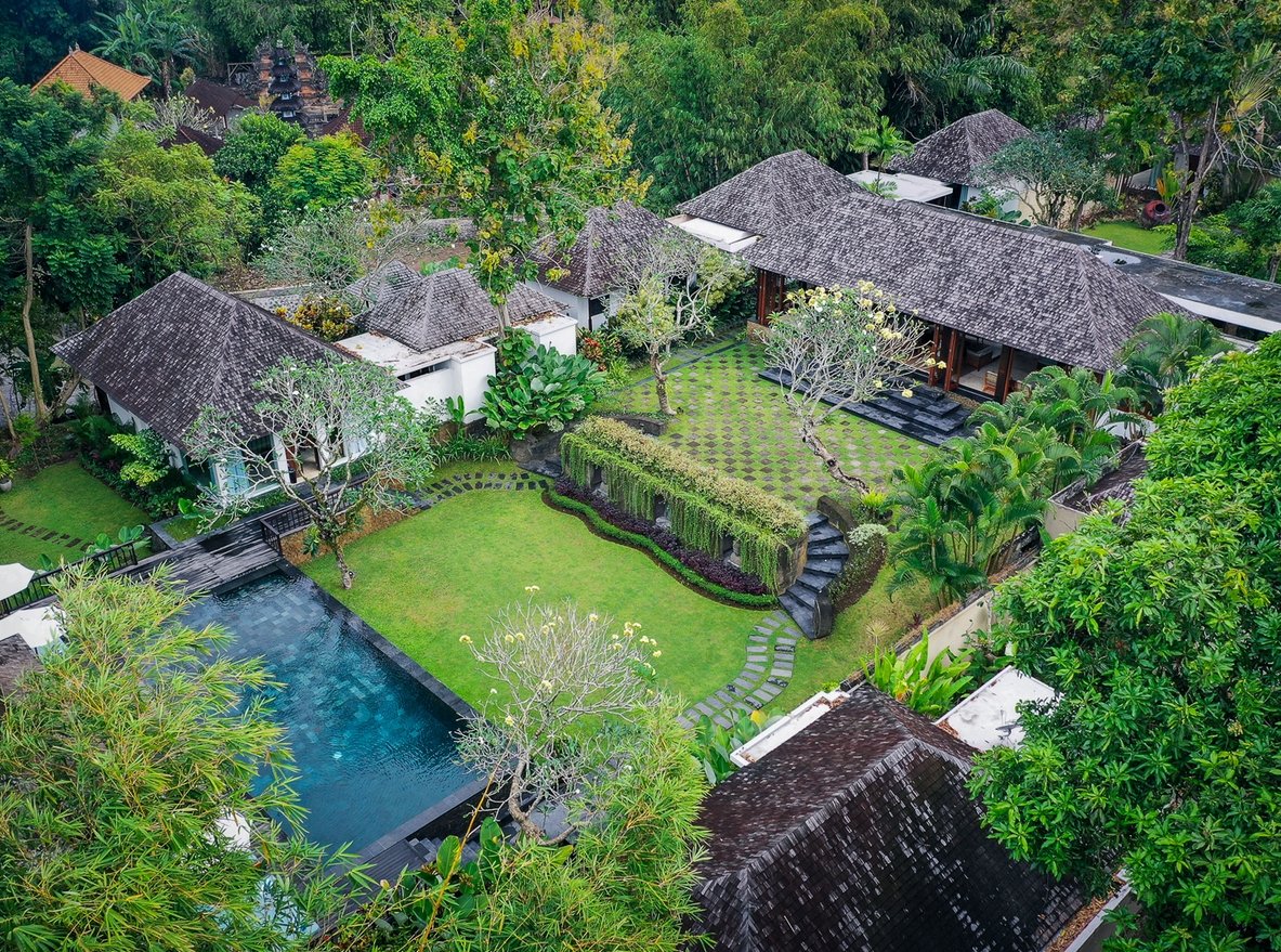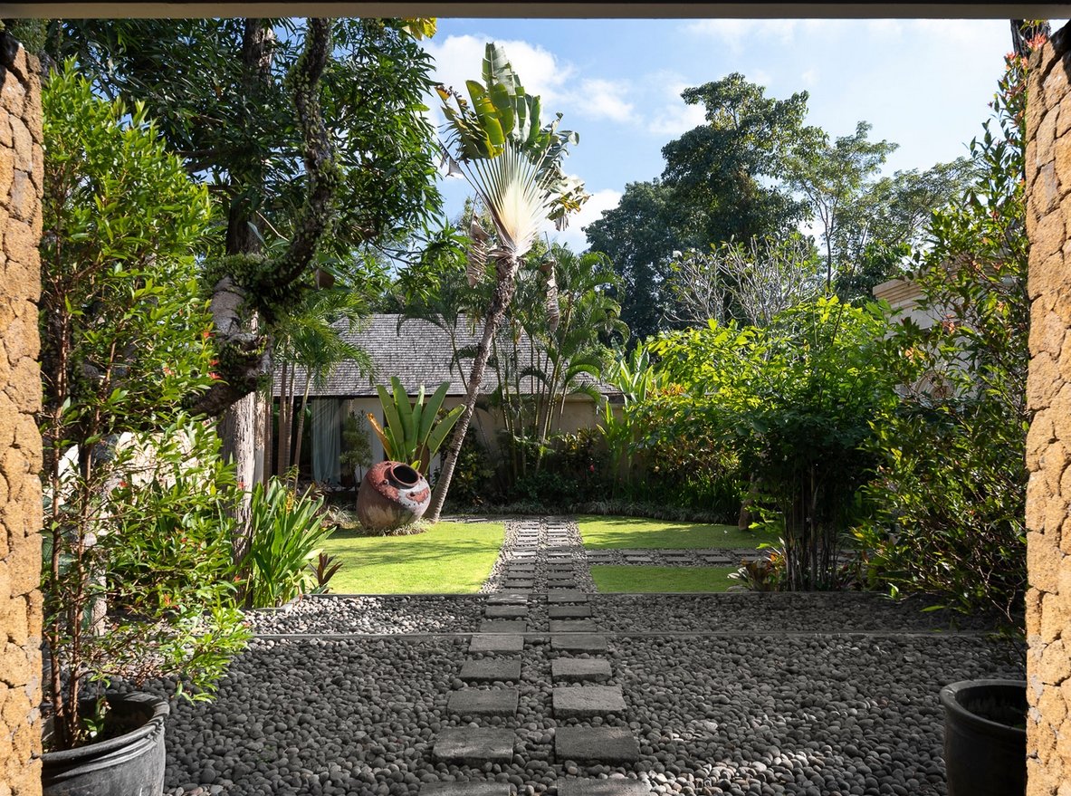 Villa is chic contemporary estate cradled in the caring arms of two streams fed by a sacred spring, deep within the verdant rice terraces of Canggu, and only minutes from the beach. Seclusion and five-star service from a large professional staff team that includes a private chef are key here, and five fabulous bedrooms are privately positioned among lush gardens and a 13-metre pool.