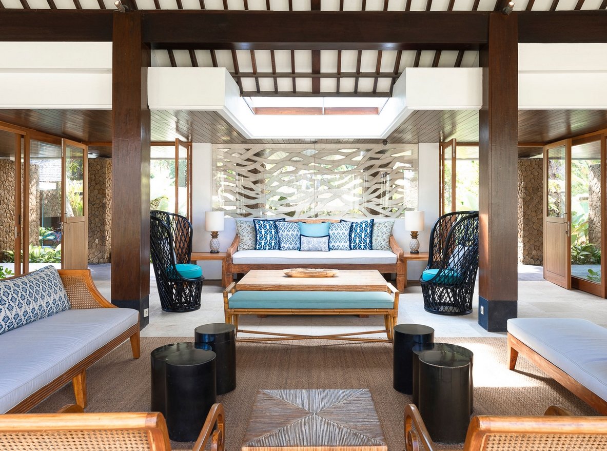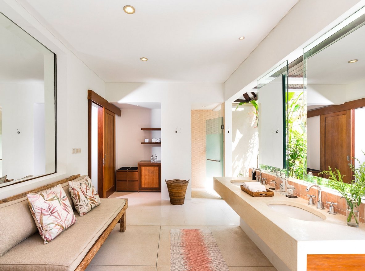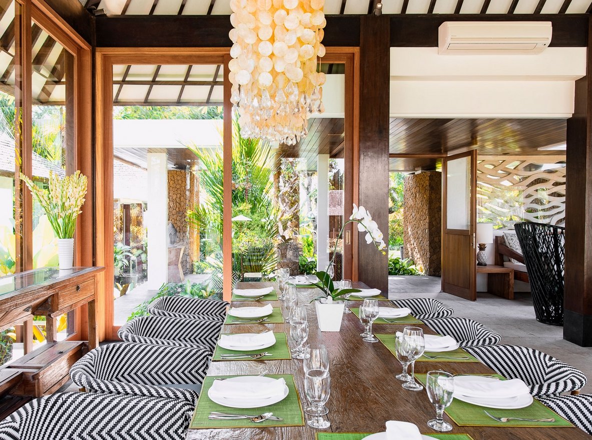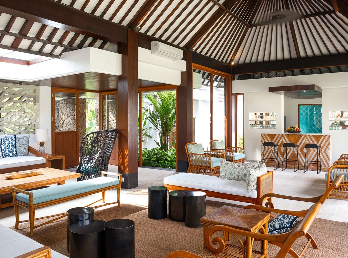 Villa is chic contemporary estate cradled in the caring arms of two streams fed by a sacred spring, deep within the verdant rice terraces of Canggu, and only minutes from the beach. Seclusion and five-star service from a large professional staff team that includes a private chef are key here, and five fabulous bedrooms are privately positioned among lush gardens and a 13-metre pool.