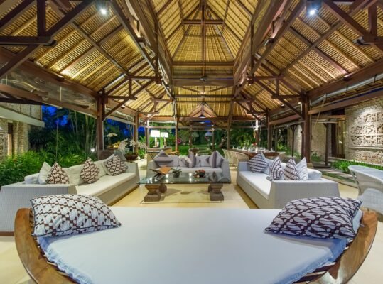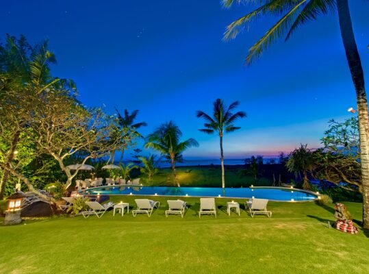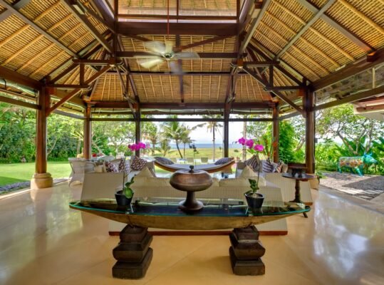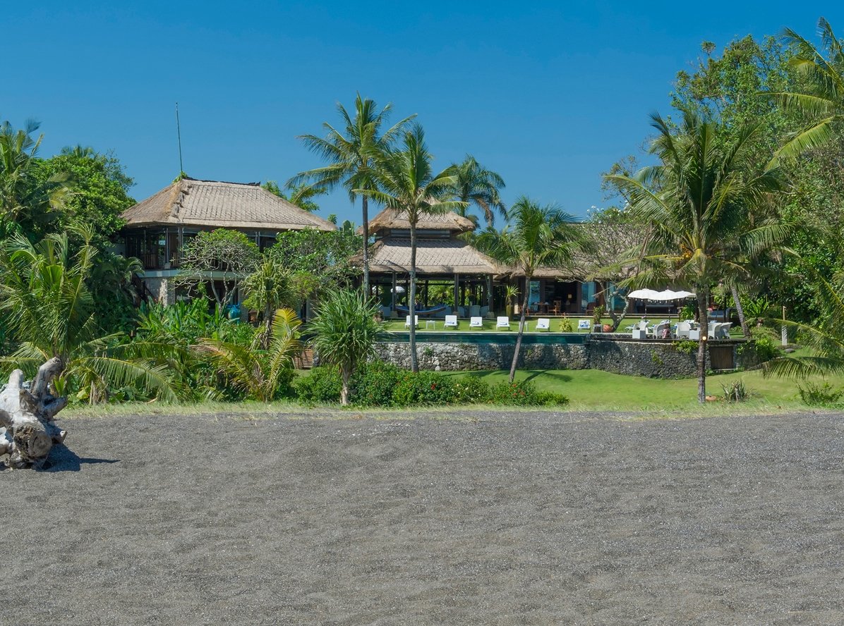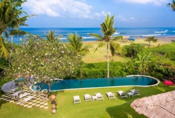 Experience beachfront living at its finest at this 6-bedroom private estate set on over 100 metres of absolute ocean frontage on Bali’s south-west coast. Located just a short walk from Echo Beach and minutes to Canggu’s best cafés, this expansive villa offers stunning sunset views, modern luxury, and traditional charm.