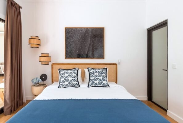 Designed with a touch of island boho style, both bedrooms overlook the pool and are equipped with: