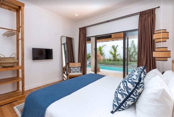 Whether you’re enjoying a morning dip, sunbathing, or sipping cocktails as the sun sets, the outdoor space is designed for island-style relaxation.