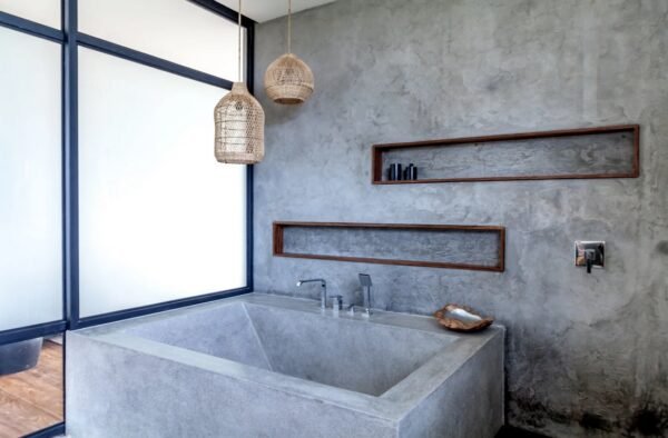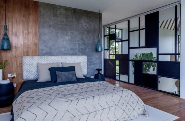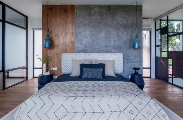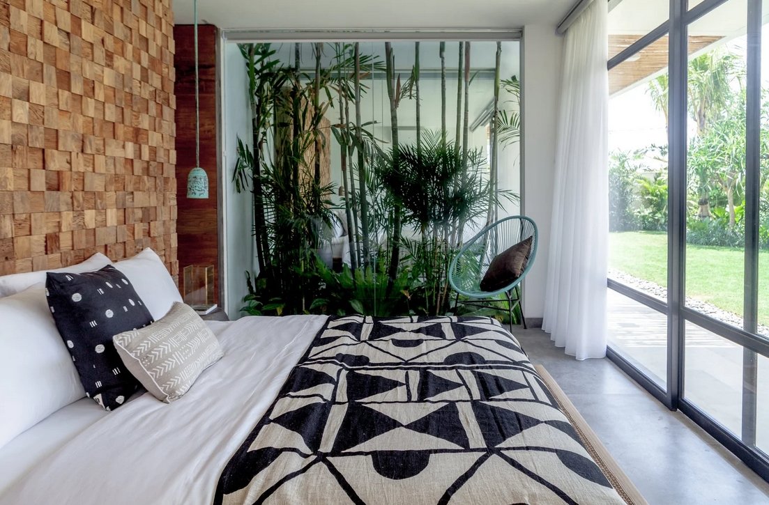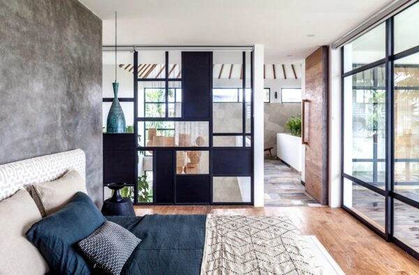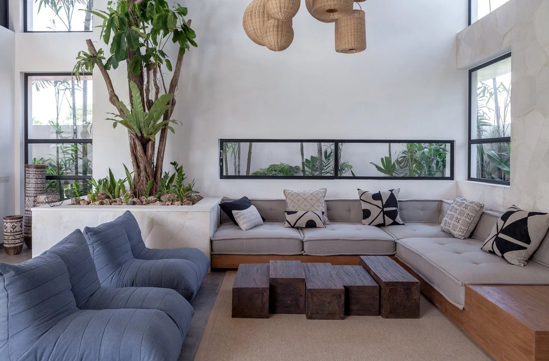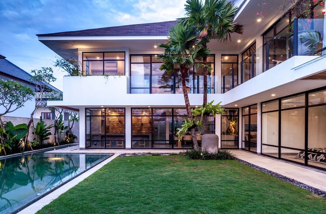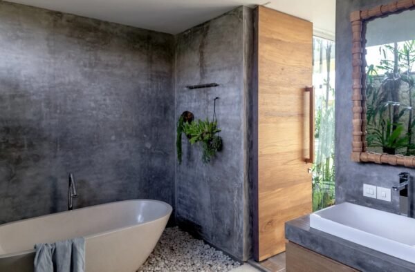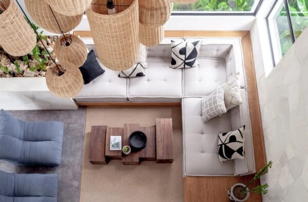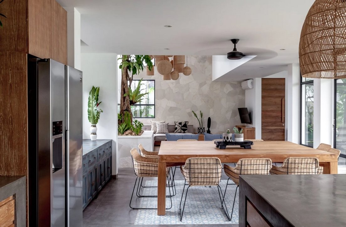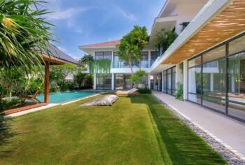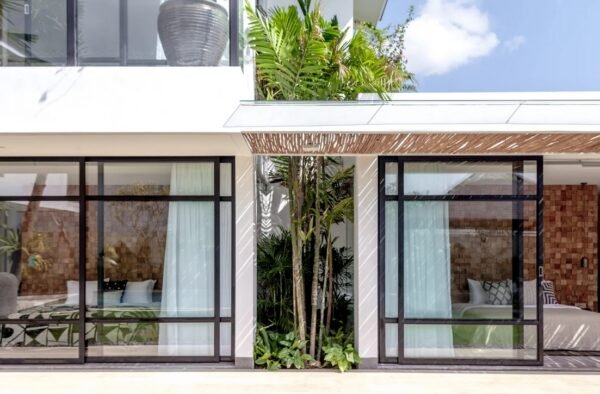 Nestled on a spacious 700 sqm site, this stunning two-storey villa perfectly blends modern architecture with natural elements. Designed by Felipe González Jiménez de la Espada of Sukyf & Architects, the property offers an oasis of calm surrounded by lush greenery — just steps away from Canggu’s lively cafés, restaurants, and bars.