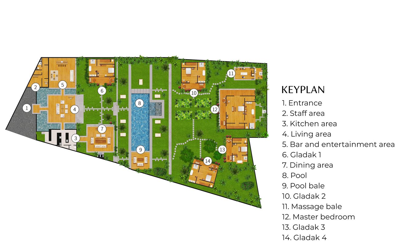 • 20m x 6m private swimming pool surrounded by tropical gardens