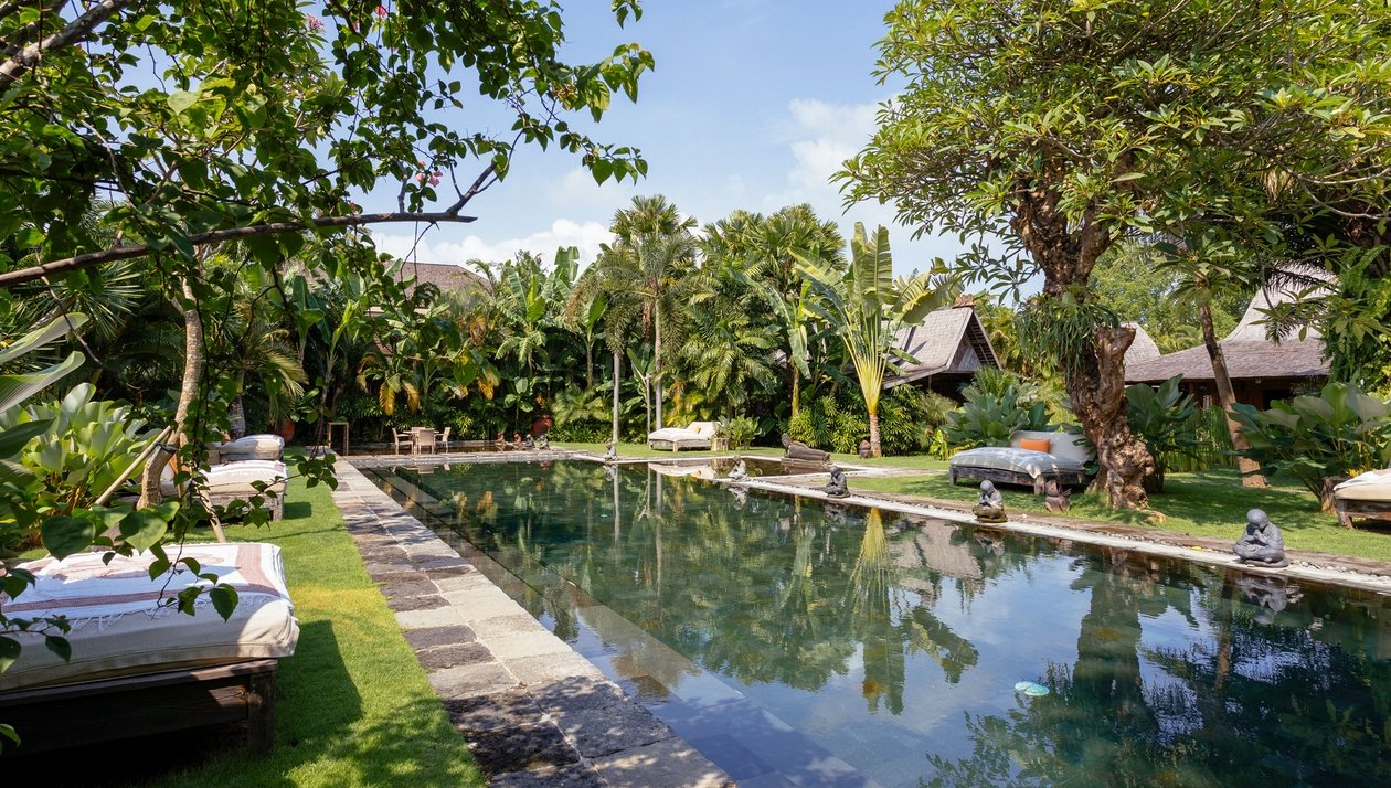 Lush and peaceful Villa in Canggu, Bali, stands out from other luxury villas for its close-to-the-beach location and chic heritage style. Open-air living pavilions and five splendid ensuite bedrooms are nestled throughout vast terraced gardens around a 20-metre swimming pool.