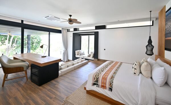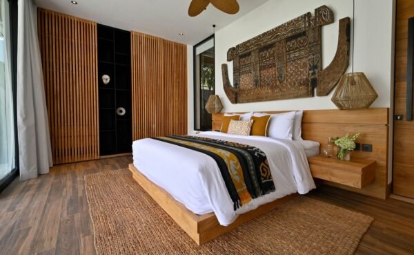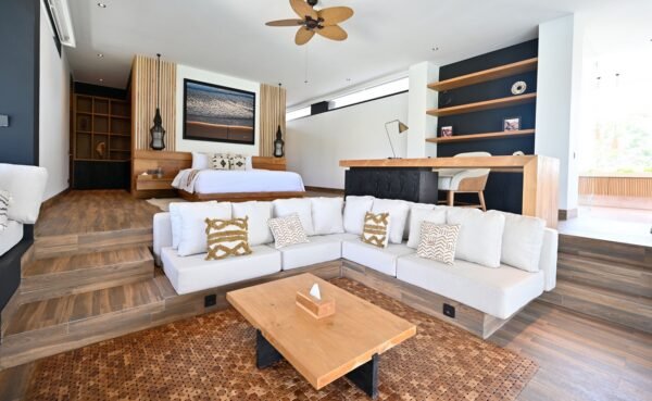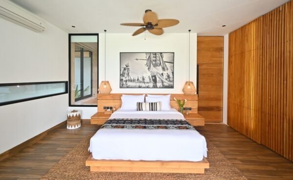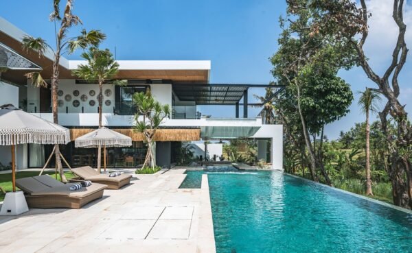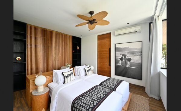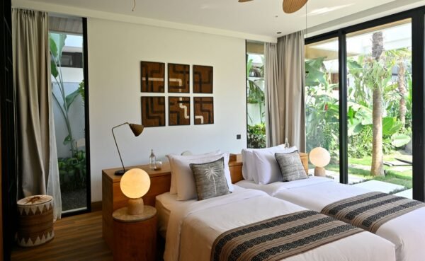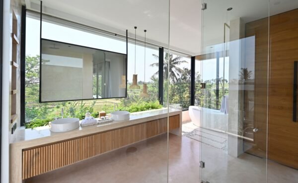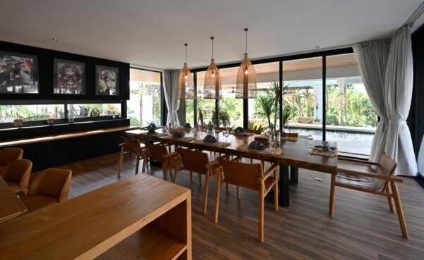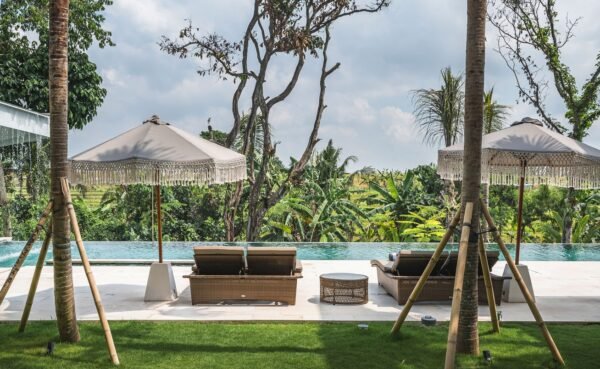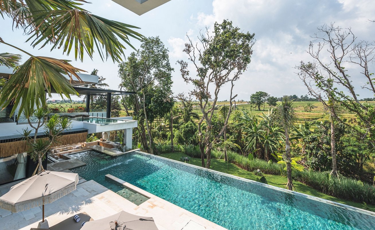 Completed in 2023, this contemporary tropical villa blends sleek architecture, natural materials, and curated Indonesian art to create an unforgettable escape. Spanning two wings, the property offers vast indoor-outdoor living spaces perfectly oriented to sweeping rice field vistas.