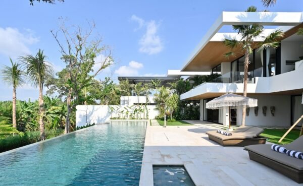 Stunning new 6-bedroom villa with sweeping rice field views, 25m infinity pool with swim-up bar, sunken lounge, and private chef. Perfect for families, friends, and celebrations—just 10 minutes from Canggu’s beaches, cafes, and nightlife.