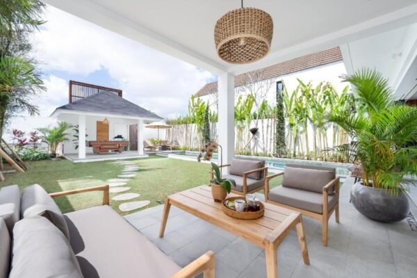 The property is designed with tropical charm and modern living in mind, complete with a private swimming pool, spacious garden, and open terrace. Its central yet peaceful location makes it easy to enjoy both relaxation and the lively atmosphere of Canggu.