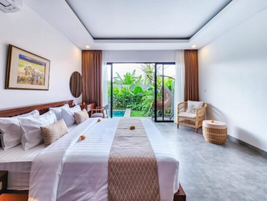Whether traveling with family or friends, the villa provides plenty of space to enjoy time together while also offering private corners for peace and rest. Designed with minimalist architecture and enhanced by Balinese-inspired details, it delivers both elegance and warmth for a memorable stay.