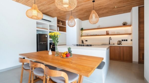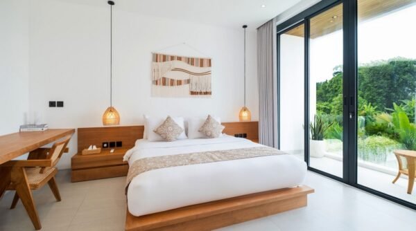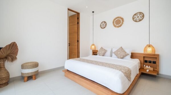 This stylish 2-bedroom villa is a fresh, tropical escape tucked away in a quiet area of Canggu, yet close to popular cafés, shops, and beaches. Its minimalist design, bright interiors, and clean lines create a calm, welcoming atmosphere.