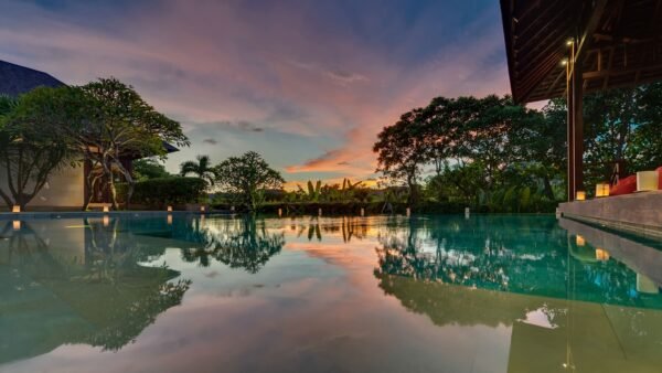 Canggu, South-West Bali – in a peaceful village setting just 5 minutes from the beach, close to cafés, surf spots, and sunset bars.
