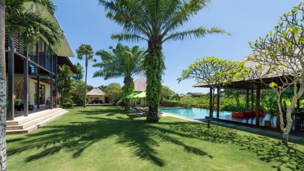 Enjoy five-star service and total privacy at this stunning 5-bedroom villa just a short stroll from Canggu Beach. Set in a lush walled garden with a large infinity pool, rice field views, and spacious indoor-outdoor living, the villa is perfect for families, friends, and unforgettable celebrations.