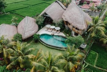 Tucked away on the edge of a peaceful Balinese village, this exclusive 5-bedroom villa sits on 1500 m² of land surrounded by rice fields, offering a serene escape with open-air living, a private infinity pool, tropical...