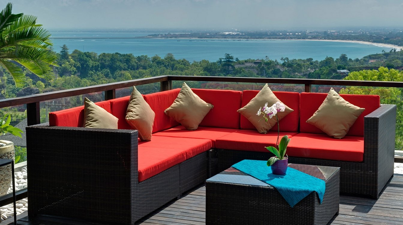 The villa is a stunningly designed contemporary villa with sweeping views over Jimbaran Bay from its prime hilltop location. East meets west as traditional Balinese features fuse deliciously with marble, granite and local woods.