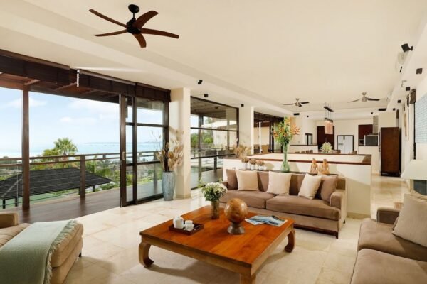 Experience the perfect family getaway at this luxurious 4-bedroom villa in Jimbaran. With stunning ocean views, spacious living areas, a private chef, and endless entertainment options, this villa offers everything for a memorable Bali holiday.