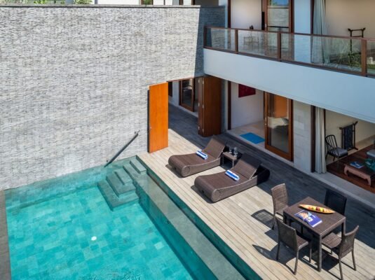- Three private pools for sunbathing, swimming, or simply relaxing in privacy