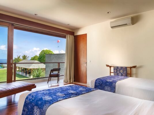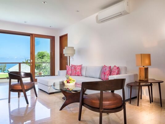Perched above the turquoise waters of Bali’s southern coast, this 5-bedroom villa offers a rare balance of privacy, luxury, and space — perfect for large family groups, couples traveling together, or wedding celebrations. Set within an exclusive cliff-top estate, guests enjoy full access to three private pools, multiple living pavilions, and shared access to a tennis court, squash court, gym, and spa.