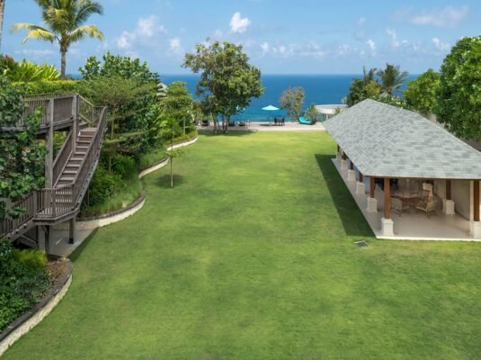 - Ocean-view master suite set below the main lawn – ultra private and romantic