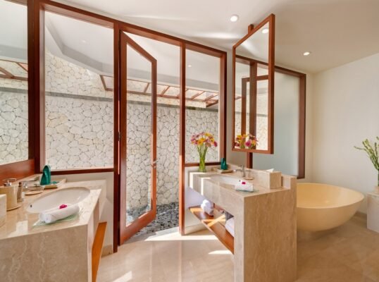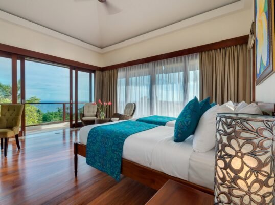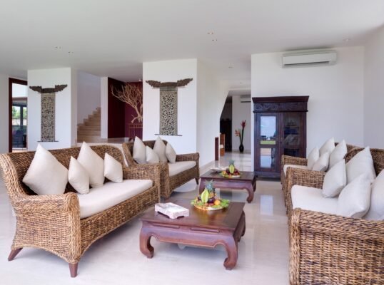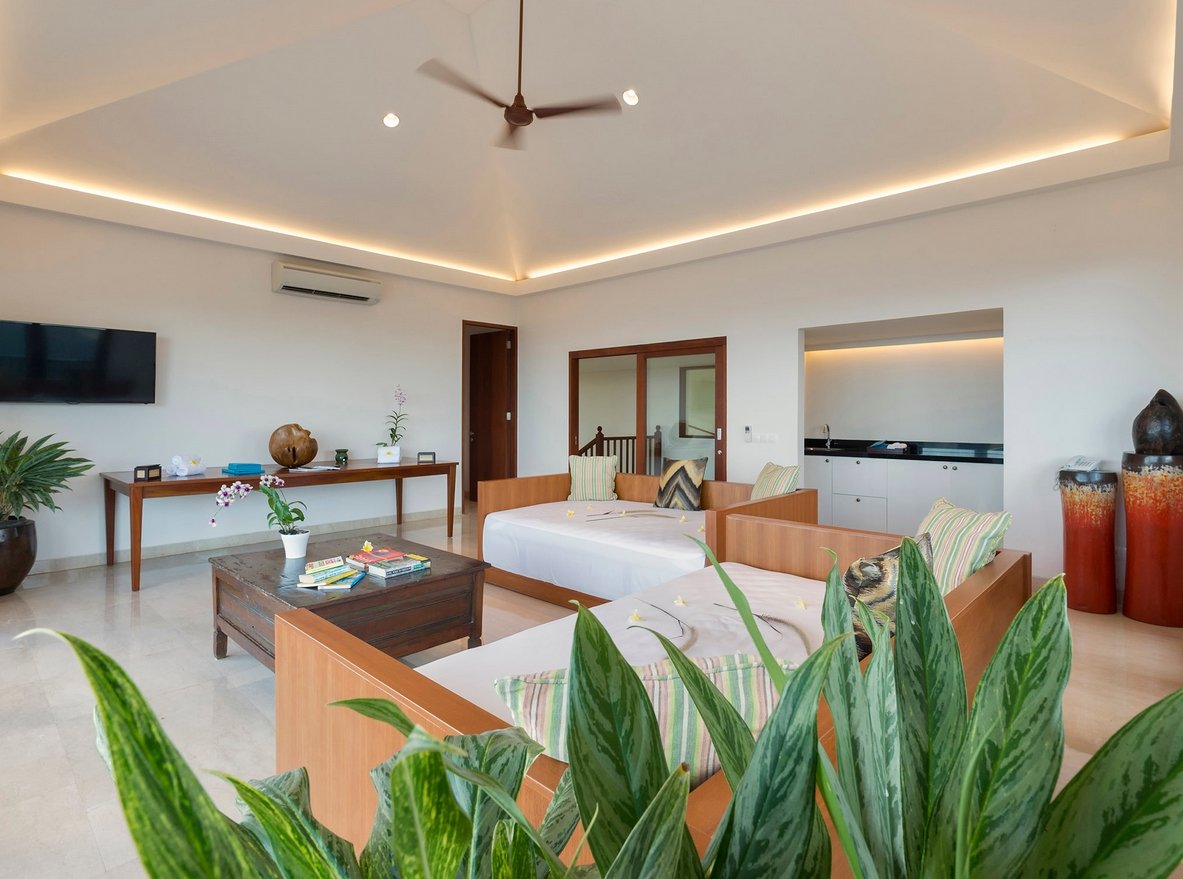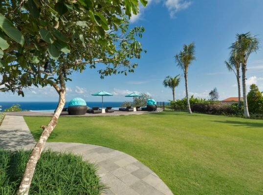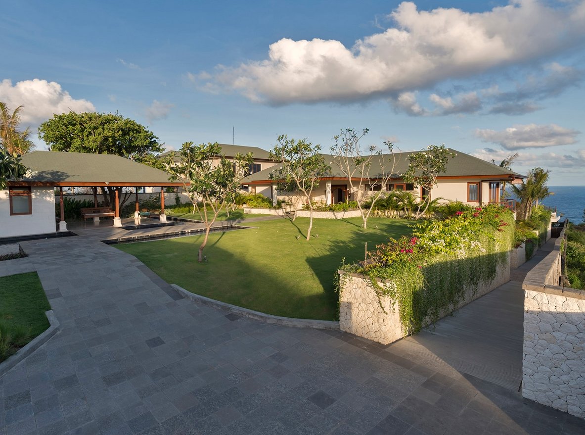 Set high above the Indian Ocean on Bali’s dramatic Bukit Peninsula, this elegant 4-bedroom villa offers a serene and spacious sanctuary for families or groups seeking modern comfort with breathtaking ocean views. Designed for both relaxation and celebration, this villa is also a spectacular venue for weddings and events, with expansive lawns and shared estate facilities.