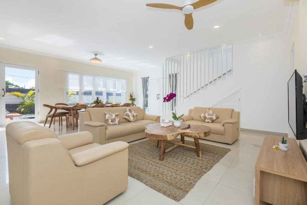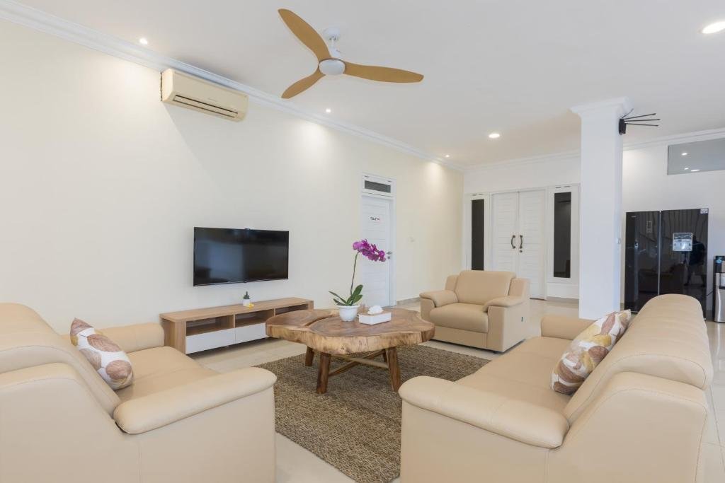5 bedroom Jimbaran Villa offers a private outdoor pool and daily hospitality service. Conveniently located on Jimbaran Hills. Featuring wooden and modern furnishings, Villa has its own garden, sun deck, and spacious balcony for a private party or family gathering. It also has a kitchen and living area, plus amenities like a flat-screen TV , free wifi all villa area and safety deposit box.