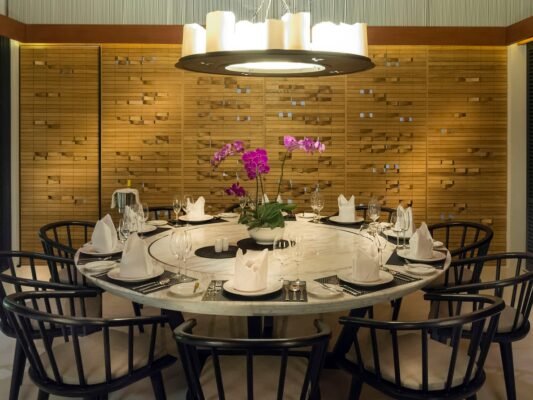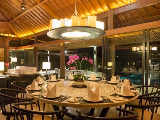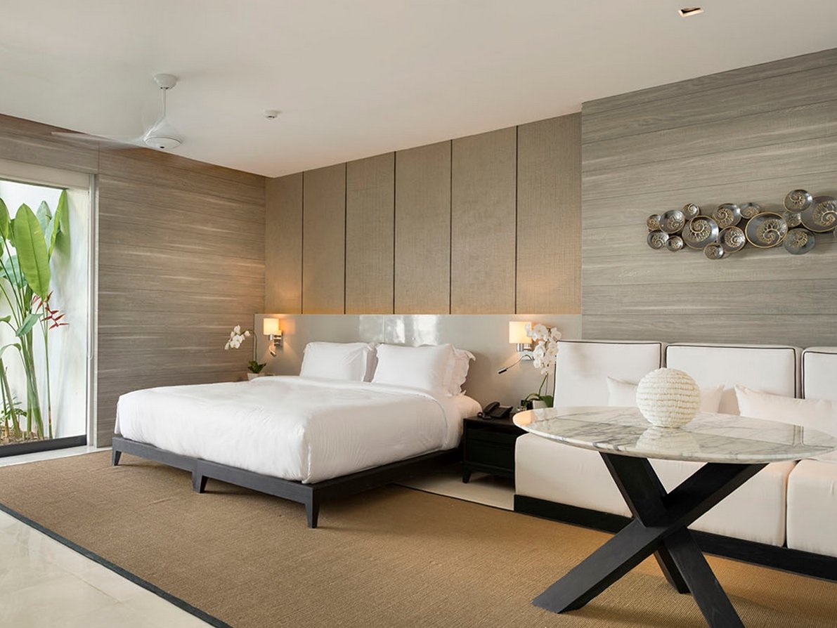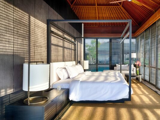 All 5 bedrooms are elegantly designed with custom furniture, soft ivory tones, ample wardrobes, and a choice of air-conditioning or fan. Bathrooms feature Javanese marble, rain showers, and bathtubs with serene views.