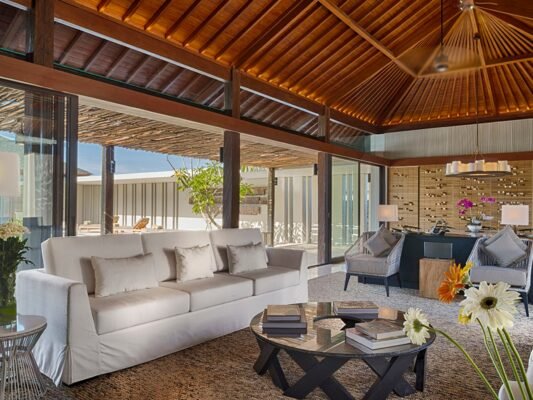Perched high on the Bukit Peninsula’s cliffs, this 5-bedroom retreat blends contemporary design with breathtaking panoramas of the Indian Ocean. From the moment you step through the grand ironwood doors, you’re welcomed into a sanctuary of elegance, space, and serenity.