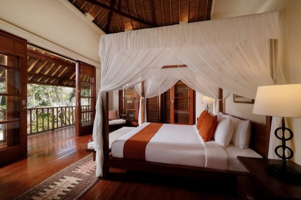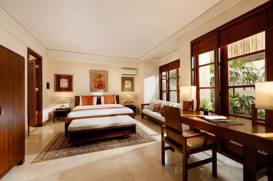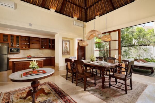 Walk through a grand limestone entrance and be greeted by a striking wooden horse sculptureβjust the beginning of this villa’s design charm. Inside, you’ll find wooden floors, antique art, and a thoughtful combination of natural stone and wood materials. Every detail blends Balinese tradition with subtle modern touches.