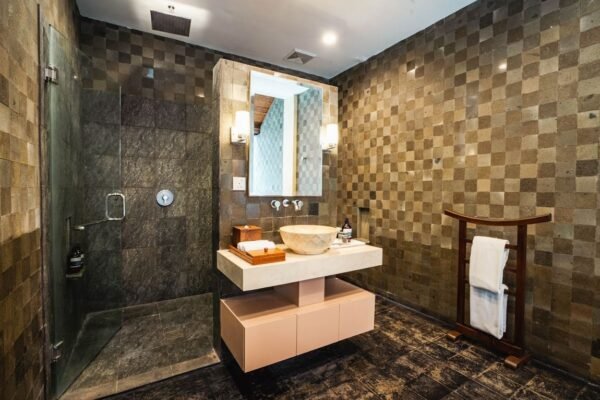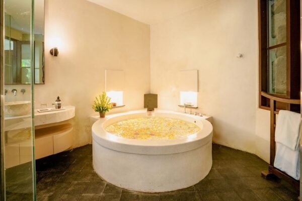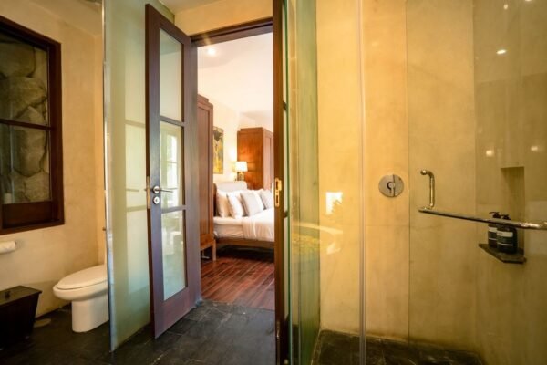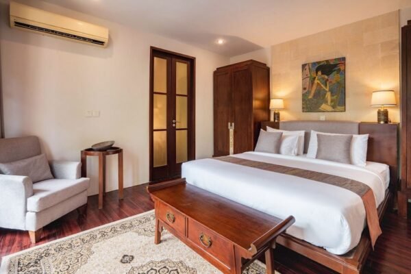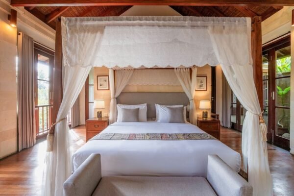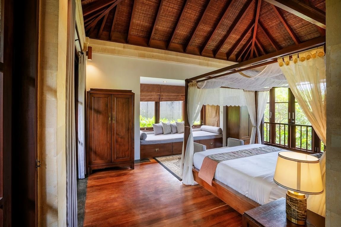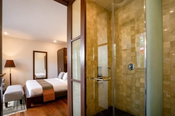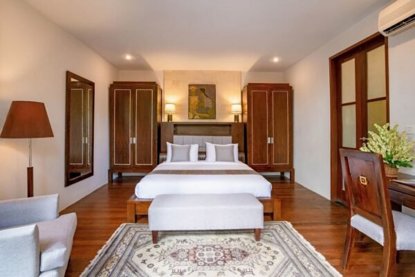 Each room combines comfort with subtle luxury, using natural wood tones, high ceilings, and soft lighting to create a peaceful atmosphere.