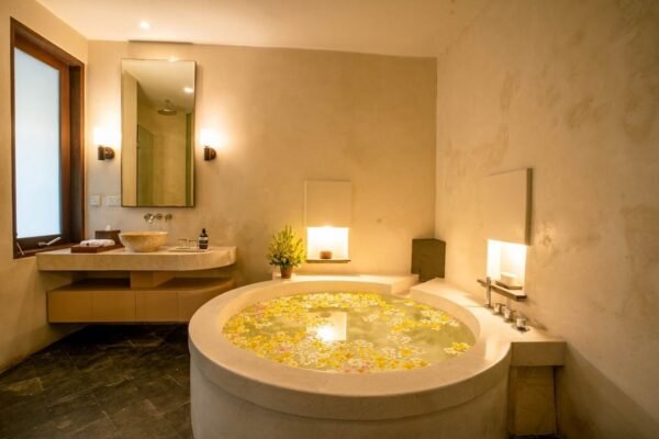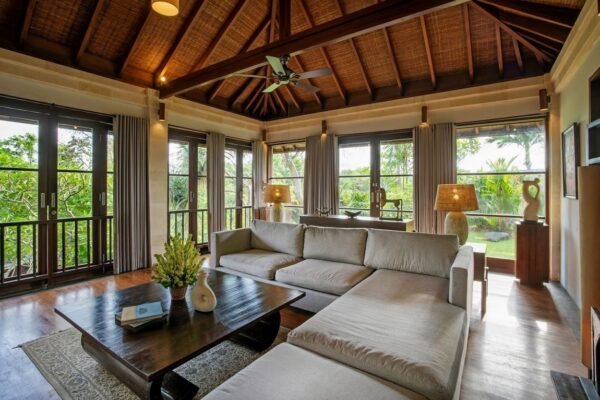 Nestled in a quiet lane near Jimbaran Beach, this spacious 3-bedroom villa blends traditional Balinese architecture with modern comfort.