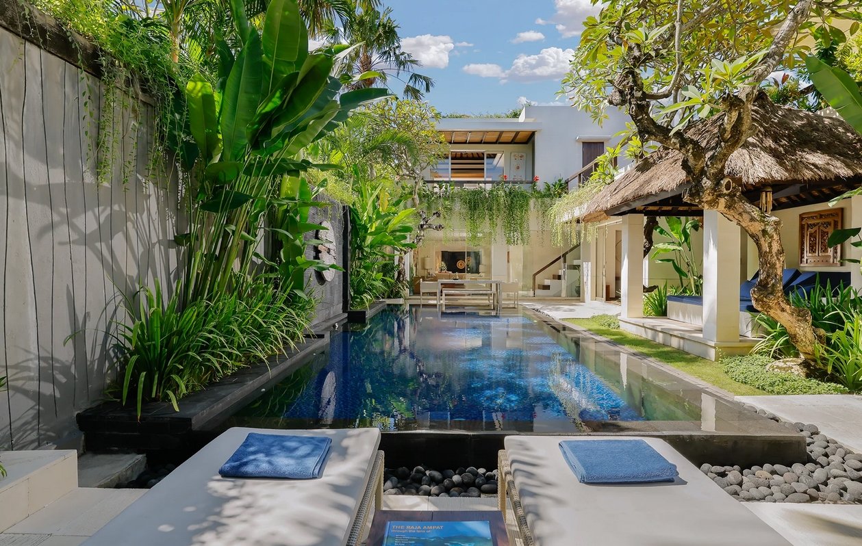 Just steps from the golden sands of Kedonganan Beach, this three-bedroom private villa combines modern luxury with authentic Balinese charm. Designed for families and groups, it offers spacious interiors, a private pool, and a rooftop terrace with unforgettable sunset views.