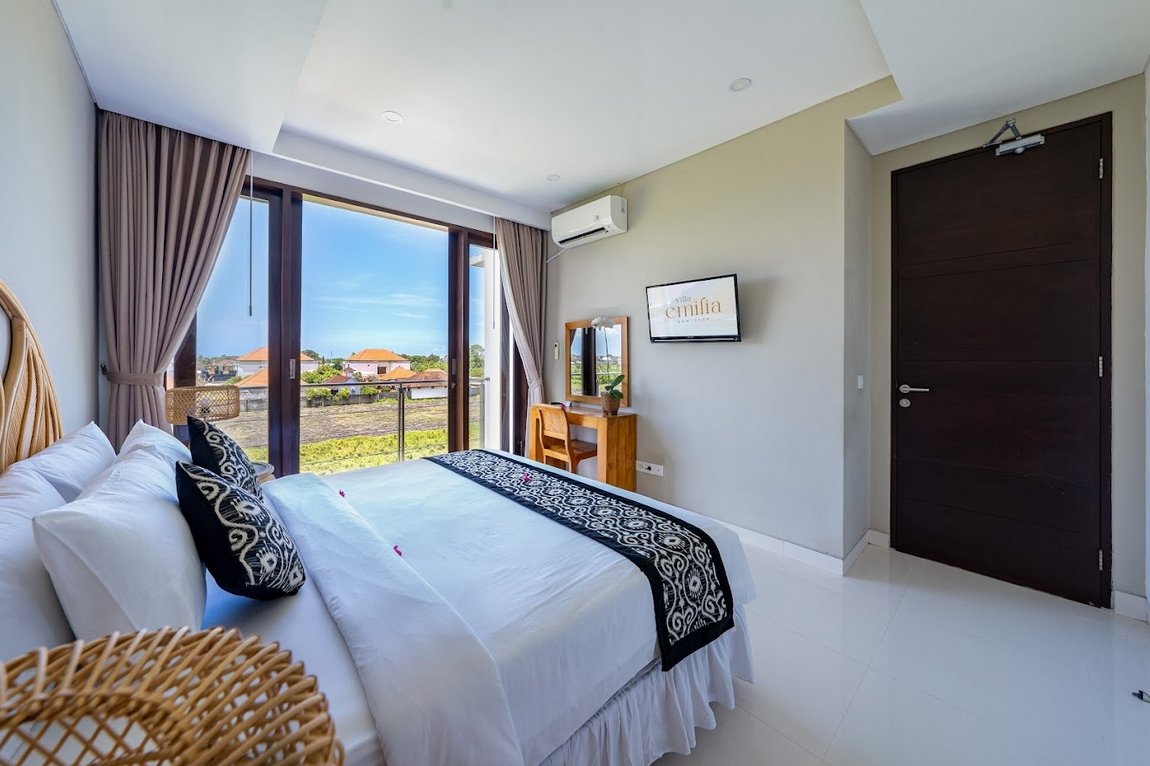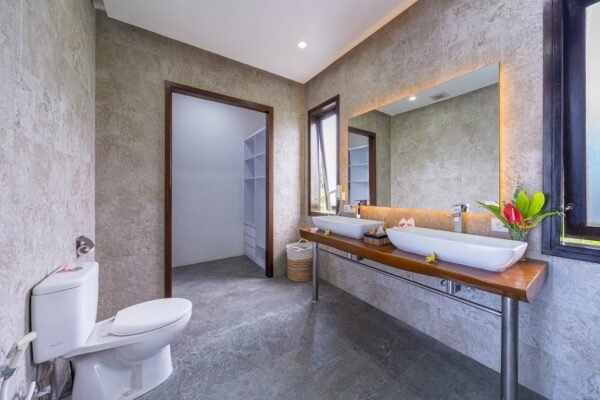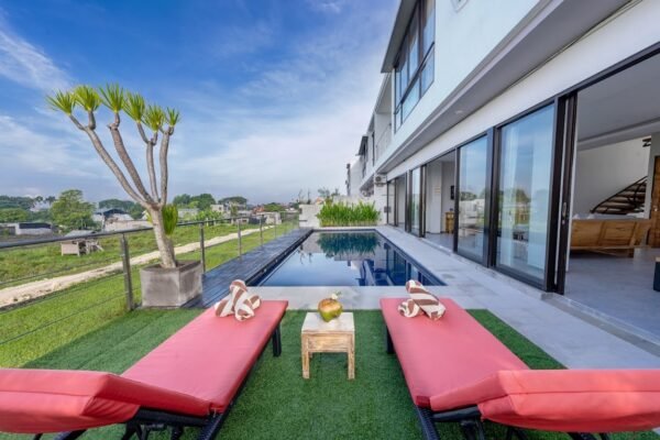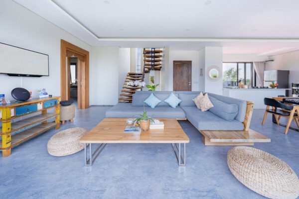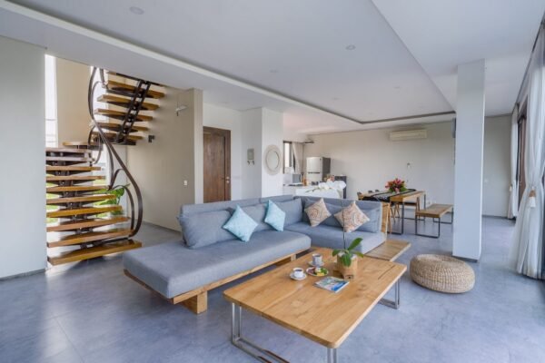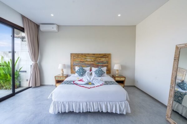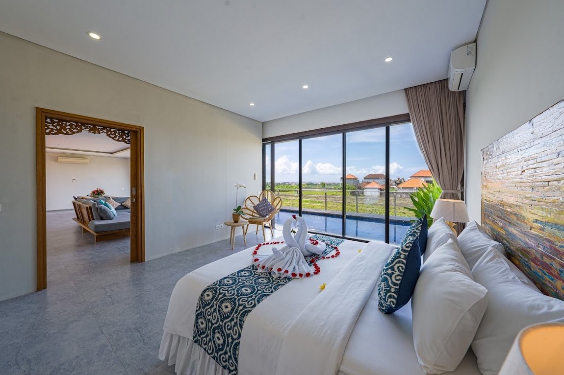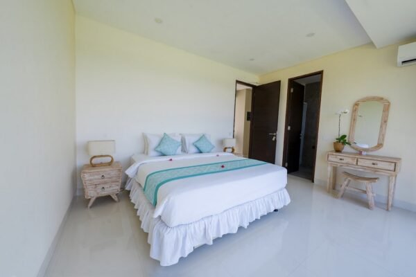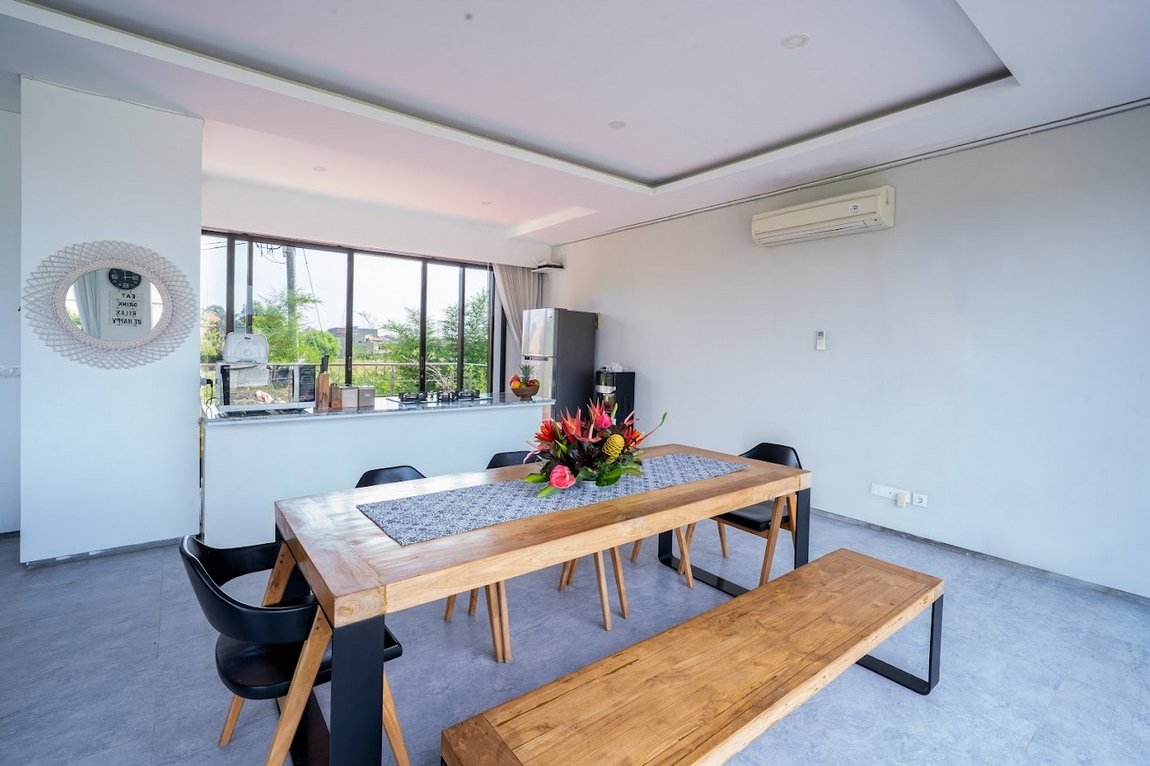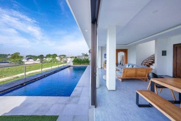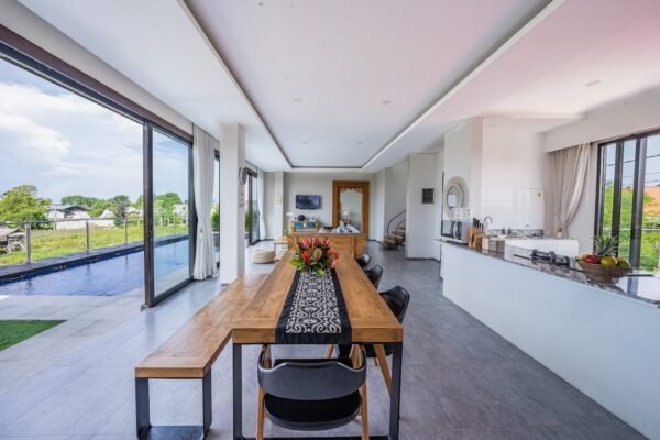 The villa’s design celebrates harmony with nature. Large windows and sliding glass doors bring the outdoors in, filling the space with natural light and fresh breezes. Every detail has been thoughtfully curated, combining modern comfort with warm touches of local artistry. The result is a home that feels luxurious yet unpretentious, designed to help you slow down and soak in Bali’s charm.