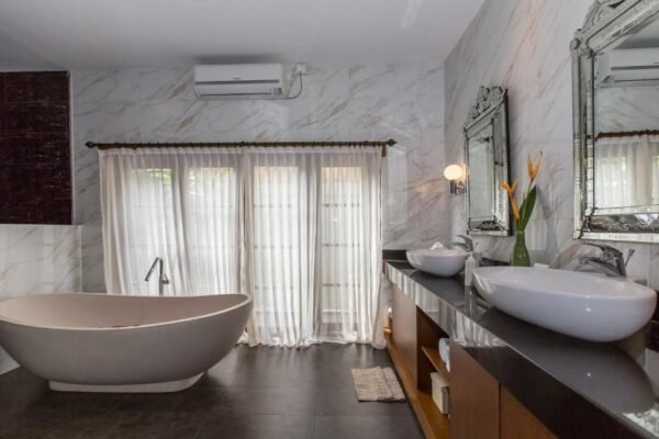 In the middle of the nature, you will find the perfect villa to relax yourself and enjoy spending time in Bali near Seminyak. This spacious villa is only about twenty minutes from Bali’s Ngurah Rai International Airport. This two levels villa will be perfect up to 6 persons thanks to its three bedrooms.