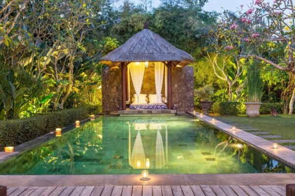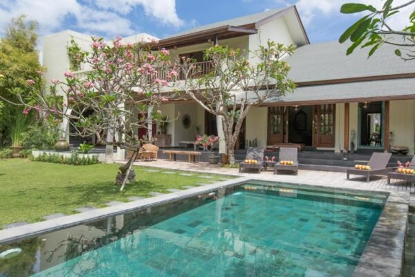 Tucked away in peaceful Kerobokan, just minutes from the vibrant scenes of Seminyak and Legian, this beautiful two-level villa is the perfect retreat for families or groups of up to 6 guests. Surrounded by lush tropical gardens with a private 12-meter pool, open living areas, and a romantic gazebo, the villa offers both comfort and seclusion — all just 20 minutes from Ngurah Rai Airport.