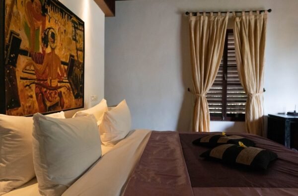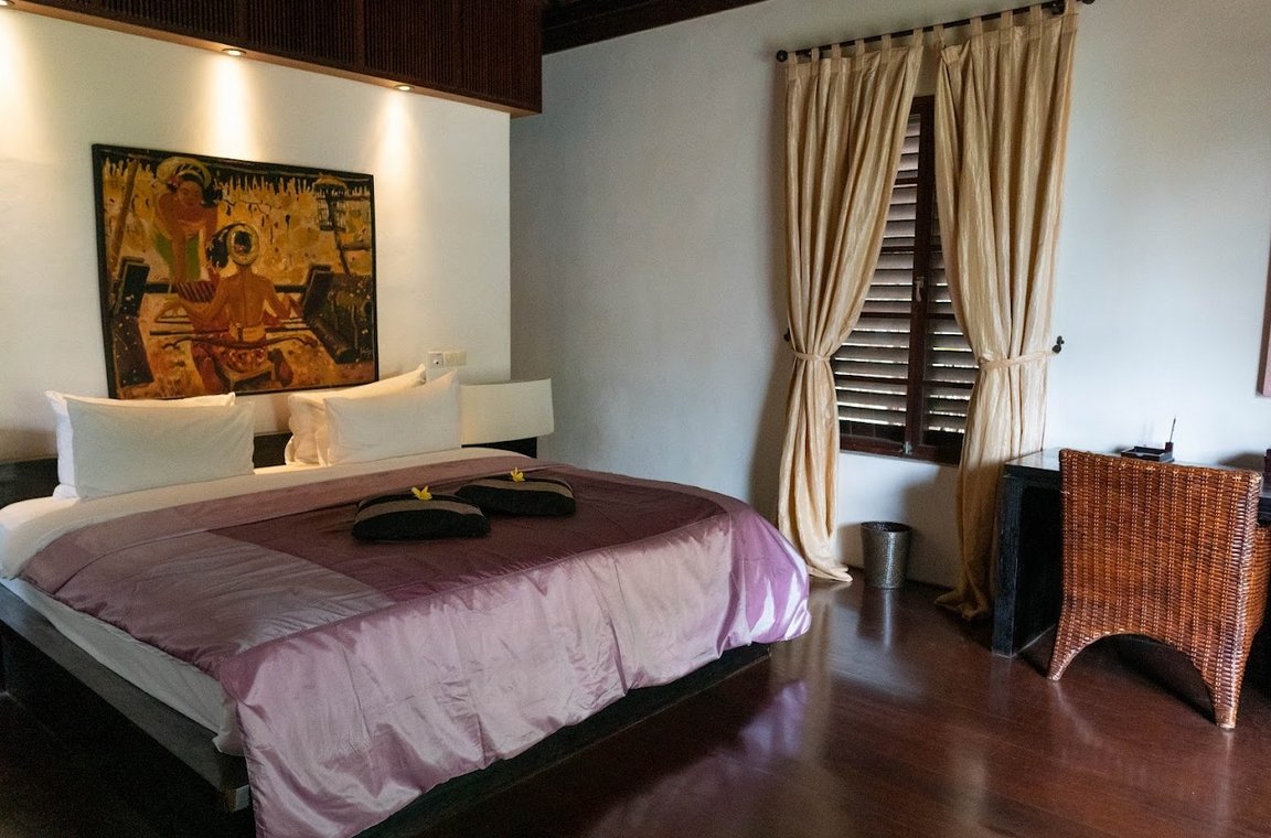 • King-size bed, air conditioning, rich teakwood interiors