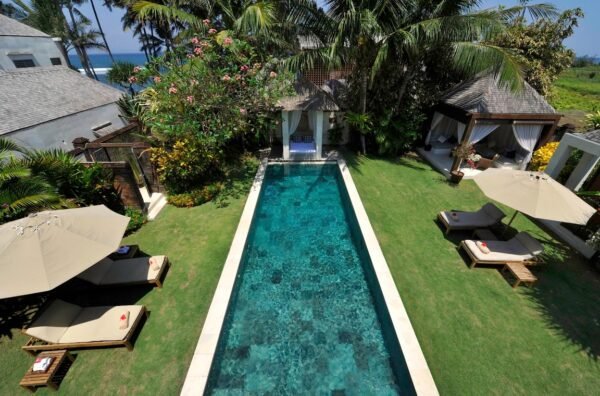 Nestled just 30 metres from the black-sand shores of Ketewel Beach, this exquisite 3-bedroom villa is a coastal haven that blends tropical elegance with relaxed beachfront living. With a private swimming pool, double jacuzzi, massage pavilion, and access to a 13-metre-wide elevated beach deck, this villa is an idyllic escape for families, friends, or couples seeking serenity and seaside beauty on Bali’s tranquil southeast coast.