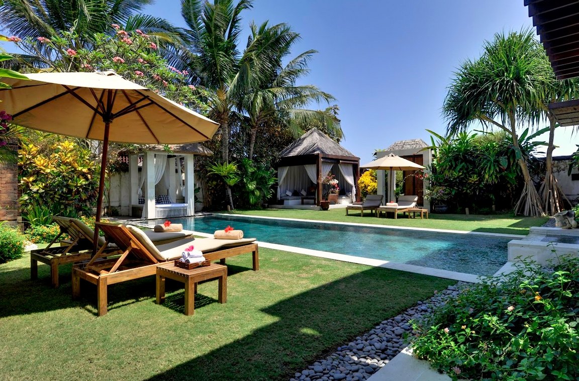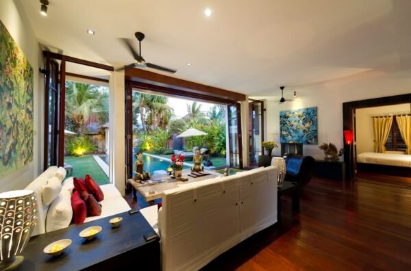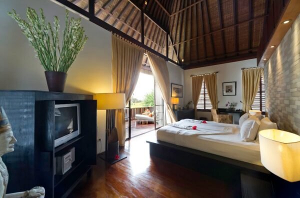 • Access via ornately carved Balinese doors or sliding garden doors