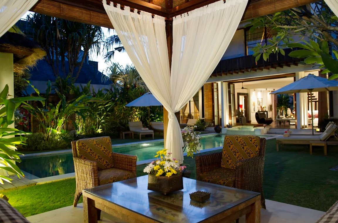 Take a dip in the 12-meter pool, or unwind in the unique double jacuzzi that extends from the living room into the pool. A massage pavilion and traditional balé offer extra relaxation spots.