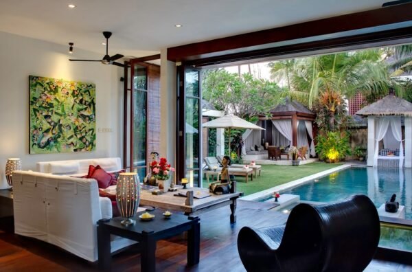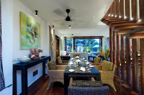 The villa’s architecture blends modern comforts, incorporating local materials and exquisite design. With indoor-outdoor living areas, it’s perfect for soaking up the tropical atmosphere.