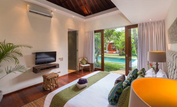 - Direct access to pool and living room