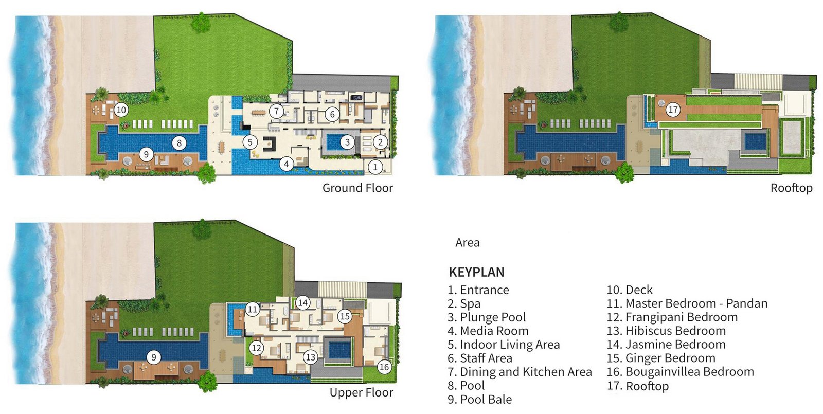 Personal service by the villa staff including a fulltime manager, housekeeper, security and attendants
