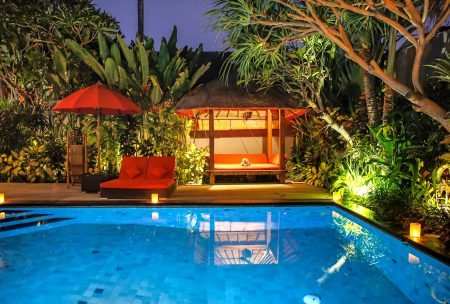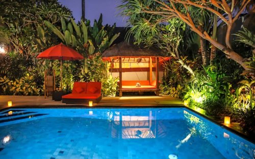 Villa is an elegant 3-bedroom villa with 2 private pools, sundeck and a gazebo surrounded by lush tropical gardens. Located 500 m from Batu Belig Beach, this stylish hideaway blends Asian-inspired design with modern interiors. Wi-Fi access is free throughout.