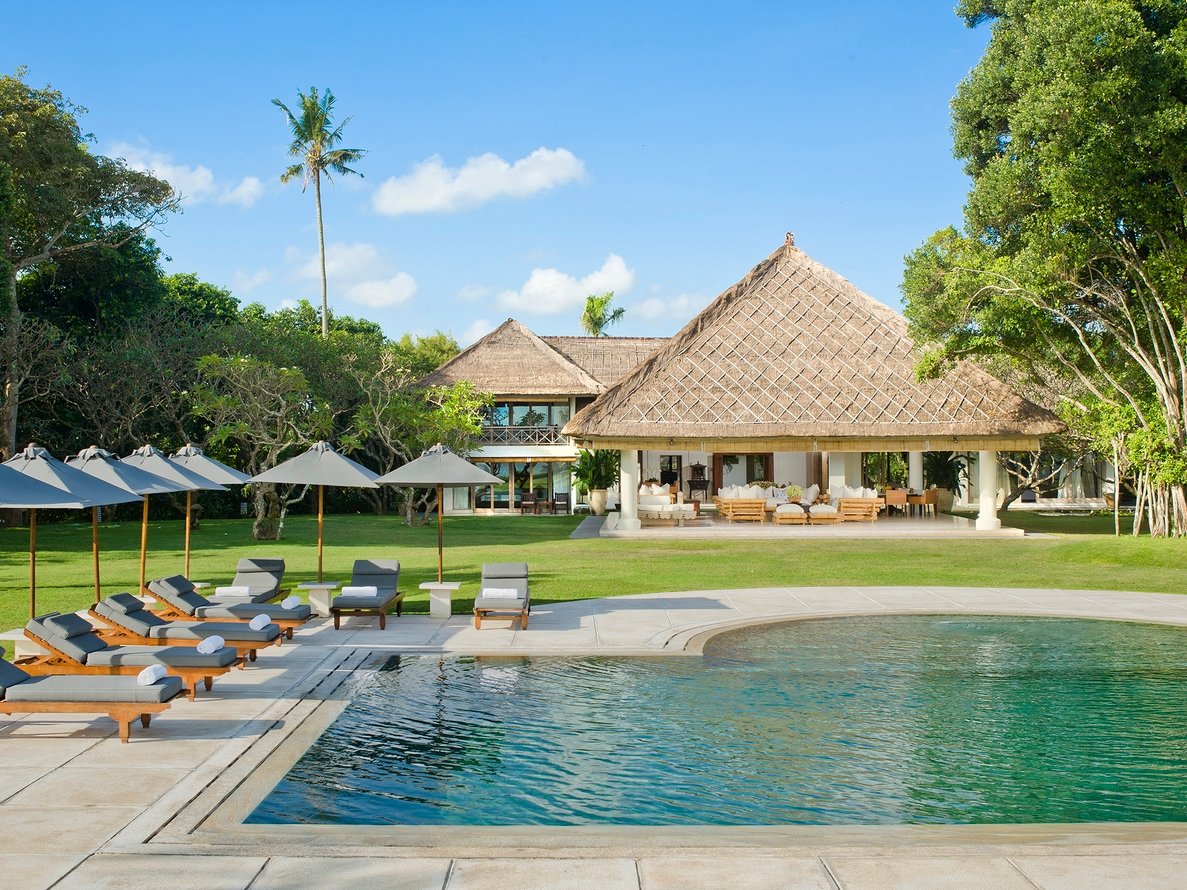 The villa is simply extraordinary – a spectacular, estate on Bali’s south-west coast set in one and a half acres of tropical garden with a 14-metre beach-edge swimming pool and direct access to the beach.