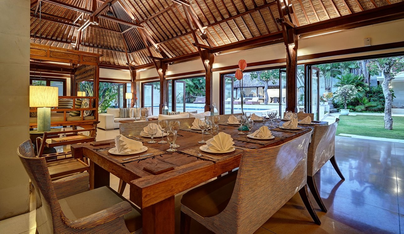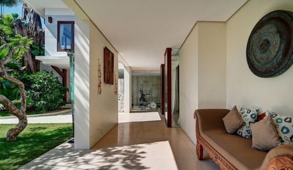 Step through the gates and into frangipani-scented gardens where serenity replaces the buzz of Seminyak—just moments away yet a world apart. This 5-bedroom sanctuary offers a rare blend of Balinese soul and modern comfort, with antique furniture, locally inspired artwork, and lush tropical gardens creating a timeless retreat.
